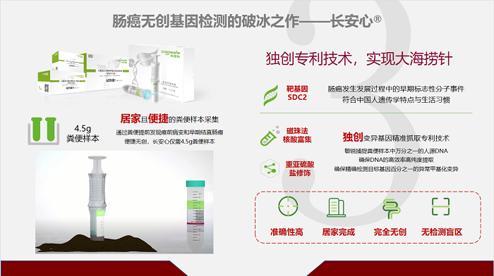 目前,長安心®在醫院、第三方檢測機構、康立明醫學檢驗實驗室等進行了超過30萬例檢測,在醫療機構、社區場所等實際應用中性能表現優異,檢出大量的早期結直癌和癌前病變,成為腸癌篩查的重要工具方法,起到行業引領和標桿作用。