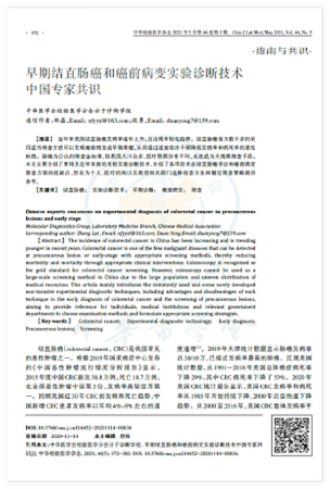 [2]中華檢驗醫學雜志2021年5月第44卷第5期《早期結直腸癌和癌前病變實驗診斷技術中國專家共識》
